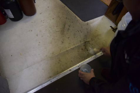 4. ※日常清掃として、本品の100倍希釈液を含ませて軽く絞ったウエスで、汚れた箇所の拭き上げを行います。