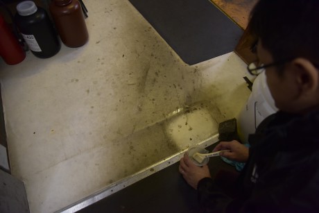 1. ショップ600の希釈液をスポンジ、ブラシ、あるいはモップを用いて、汚れた面に塗布して下さい。