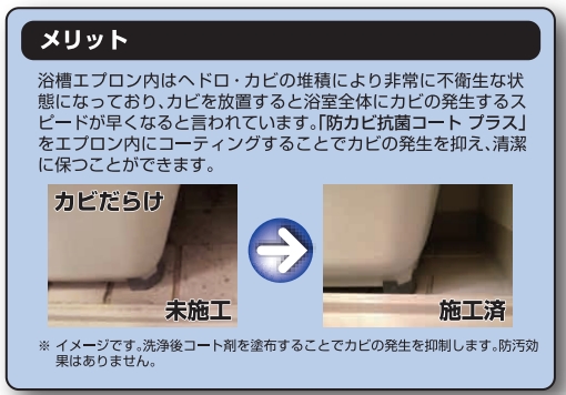 • 浴室エプロン内や浴室壁面の目地などの防カビ・抗菌加工