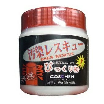 びっくり粉は、汚れを落とす原理の「溶かす・はがす・ぼかす・削る」の中で特に「削る」に特化したケミカルです。液体洗剤の溶解作用や浸透作用に要する時間をカットし、即座に洗浄効果を発揮します。