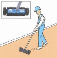 カーペットのシミ・スポットなどを清掃する方法です。硬い・柔らかいの2種類のブラシと大型キャスターで立ったままシミを除去します。