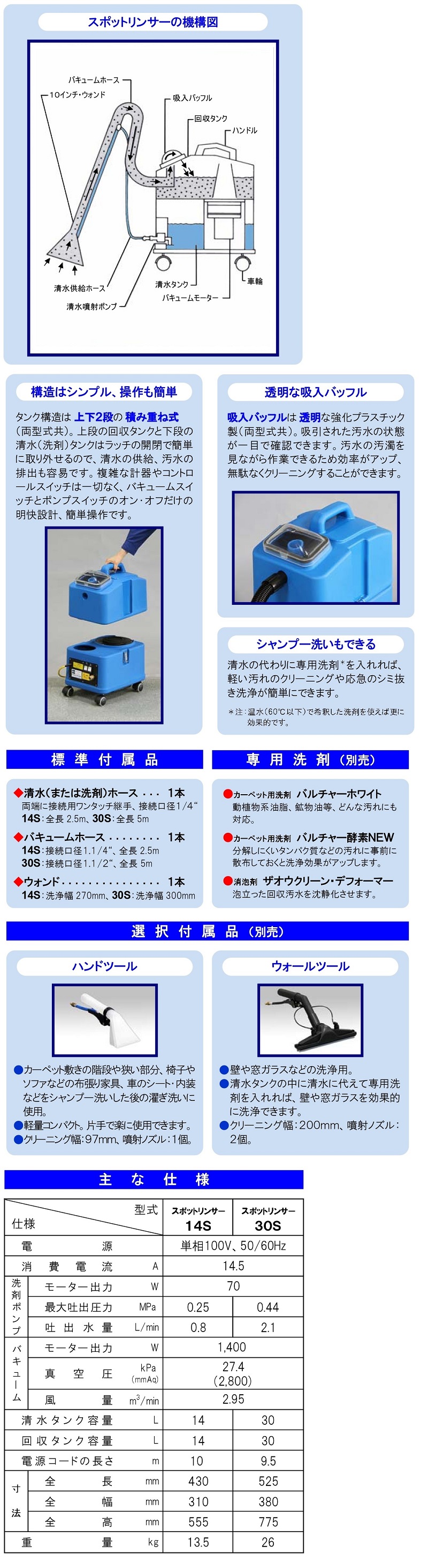 • 小面積のスポットクリーニング、出張クリーニングやカークリーニングに最適です。