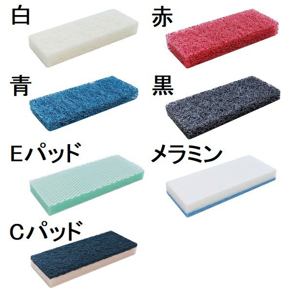 アプソン ゴシゴシパッドホルダーに装着できるスクラビングパッドです。白パッド、赤パッド、青パッド、黒パッド、Eパッド、エンボス床用、メラミンパッド、Cパッドの7種類の用途に応じたパッドがありますので、ビルメンテナンスの敵床洗浄やハクリ作業、ハウスクリーニングの床洗浄等の様々な現場で使えます。