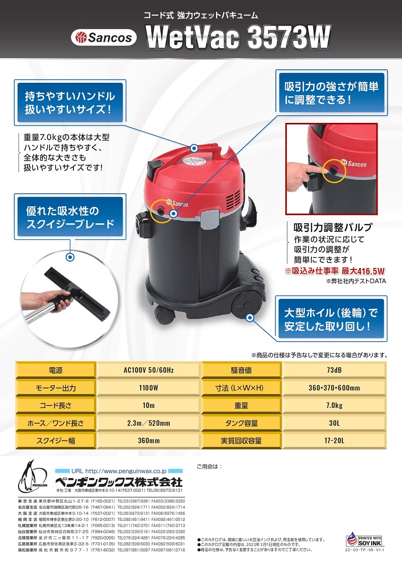 • ペンギンワックス コード式 ウェットバキューム WetVac 3573Wを販売しております。