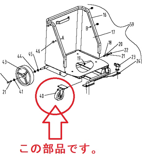 図番40番のペンギン エアスクープ8用キャスター(小)です。ネジは含まれていません。