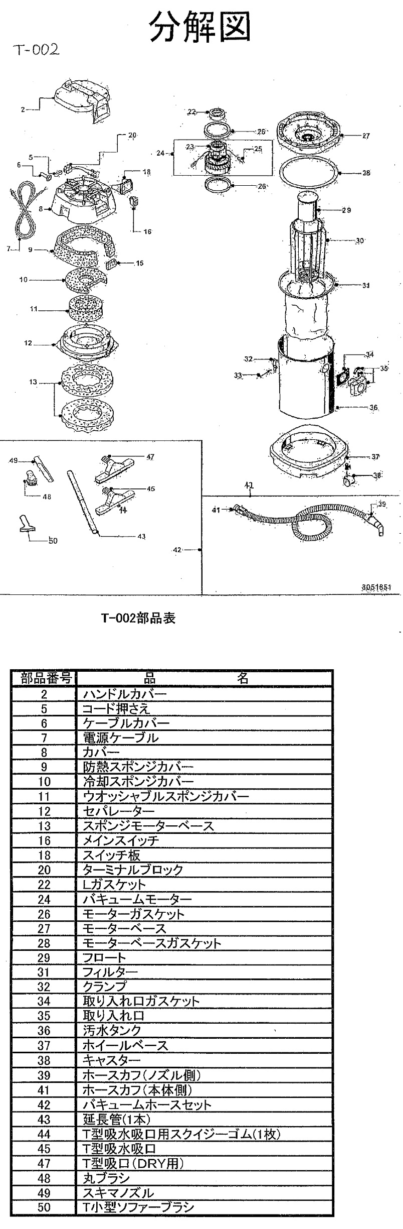 つやげん 乾湿両用掃除機 T-002用部品 7番 電源ケーブル