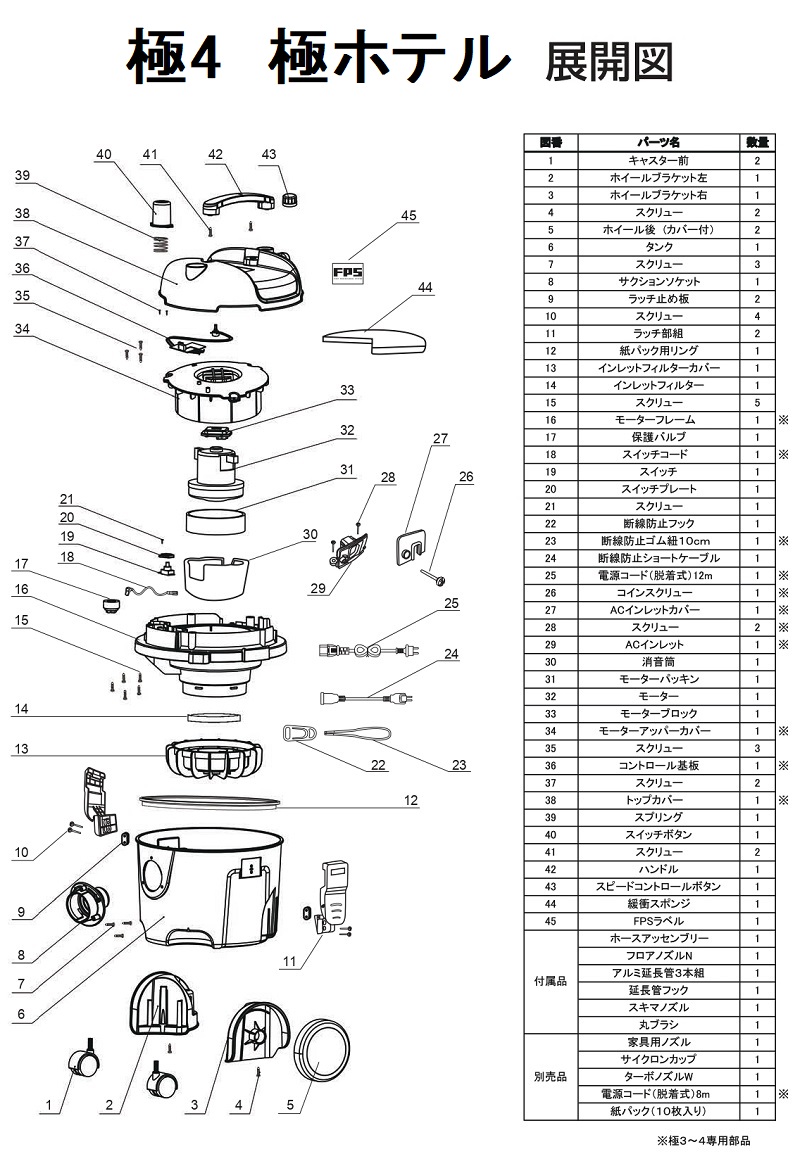 業務用小型掃除機 極4、極ホテルの掲載していない部品も販売中。お問い合わせ下さい。