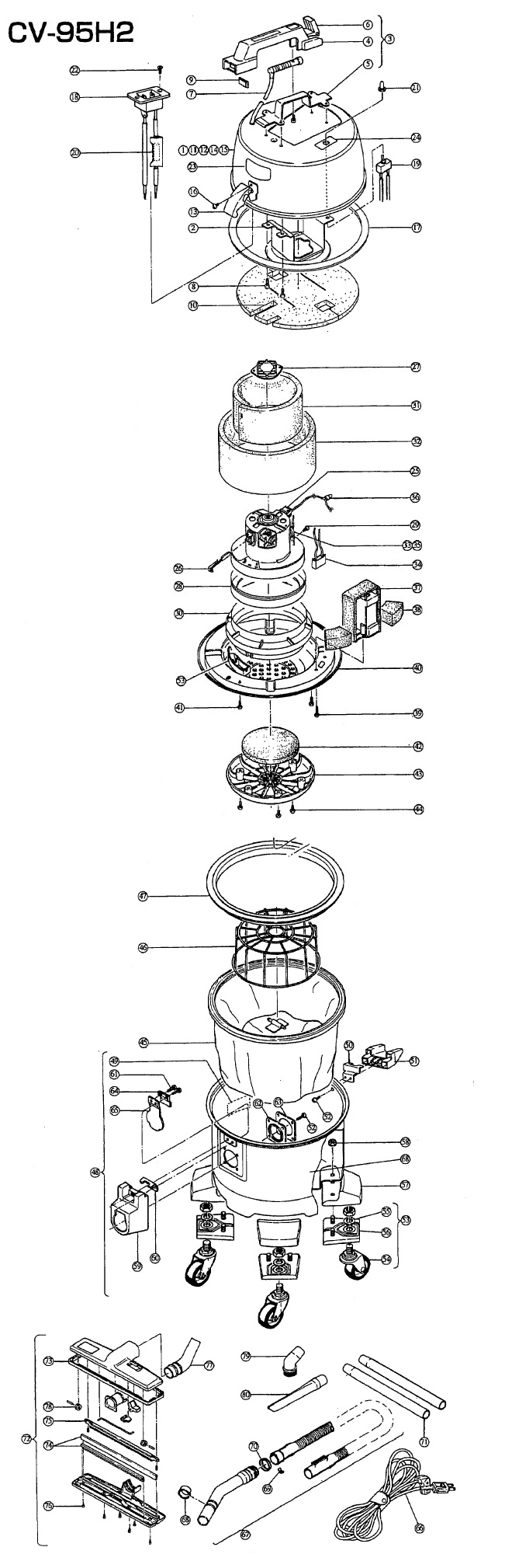 日立業務用掃除機CV-95H2用部品 電源コード20Mを販売しております。その他の、取り換え部品も豊富に取り揃えております。 販売していない部品は、ページ下部に掲載されています、部品リストをご覧頂き、番号をお問い合わせ下さい。お取り寄せ致します。