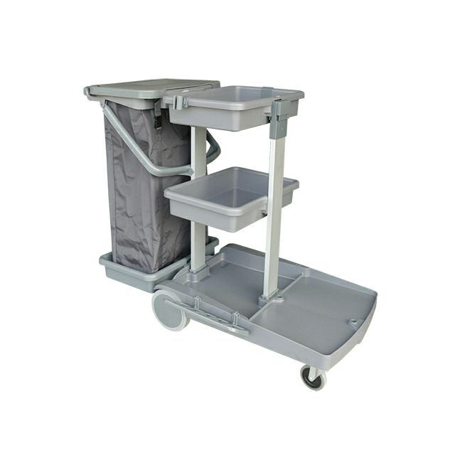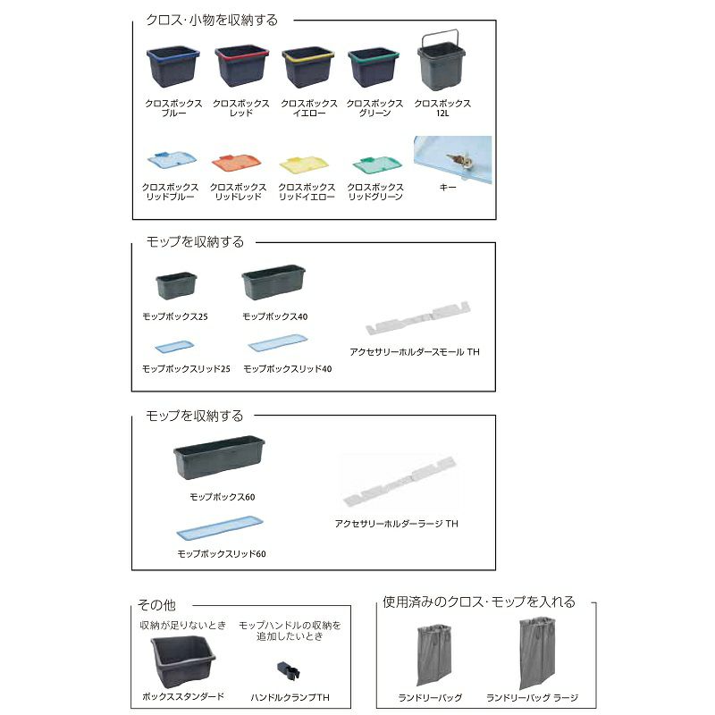 施設の毎日の清掃効率を上げる清掃用カートを販売しています。清掃道具の持ち運びに便利です。特に病院清掃で効率よく清拭を行うために企画されたクロス用バケツや、モップ用バケツを使い易く搭載し、清掃の動きをサポートする清掃カートは必須商品です。