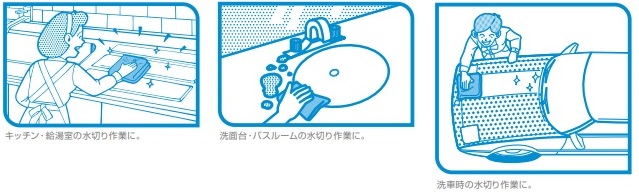 • キッチン・給湯室・洗面台・バスルーム・洗車時の水切り作業に