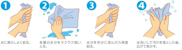 1. 水に濡らしてよく絞ります。