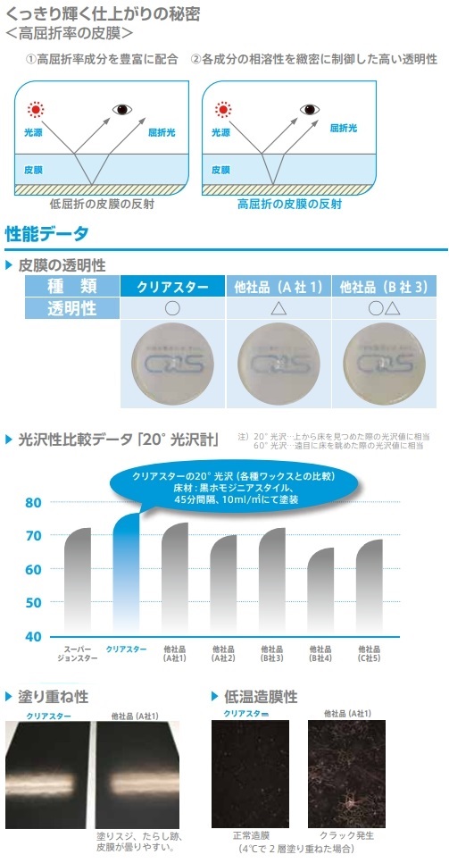 化学床全般(リノリウムを除く)に用いる床材保護と美観向上のための樹脂ワックスとして