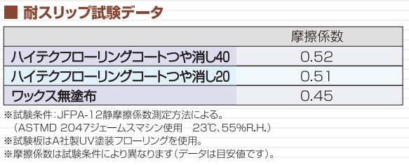 - 抗菌剤配合により、衛生的な床面を維持します。
