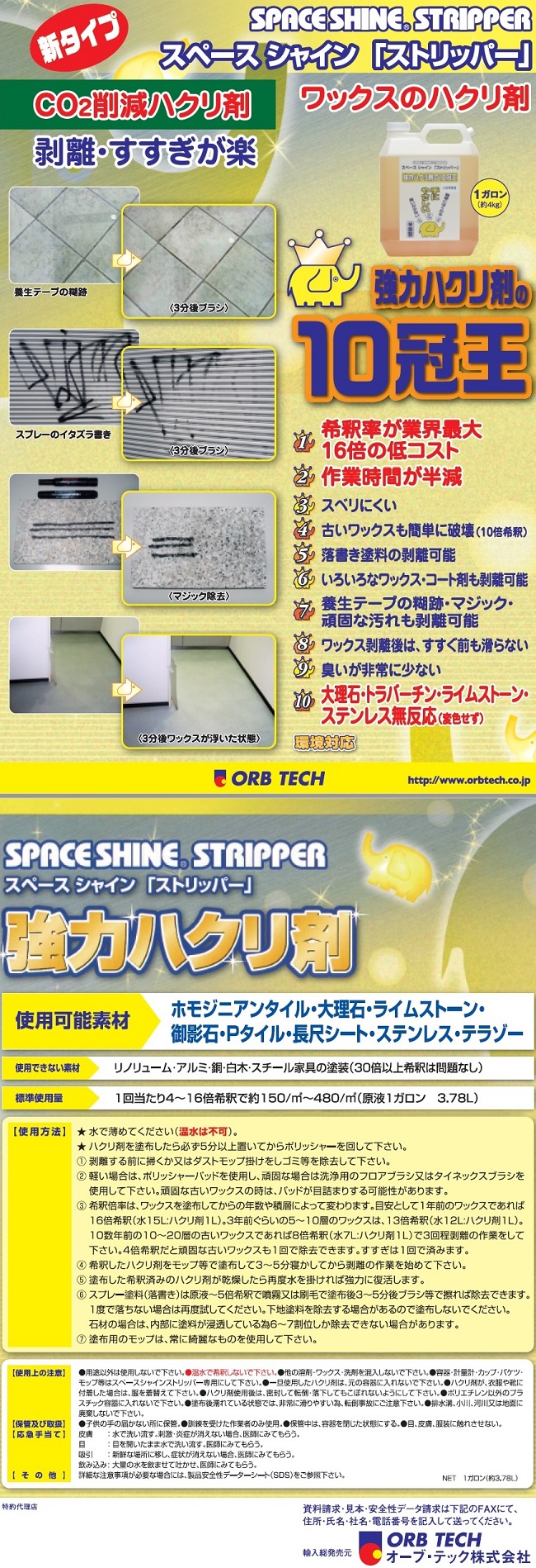 • 「ストリッパー」は、ワックスの強力ハクリ剤です。
