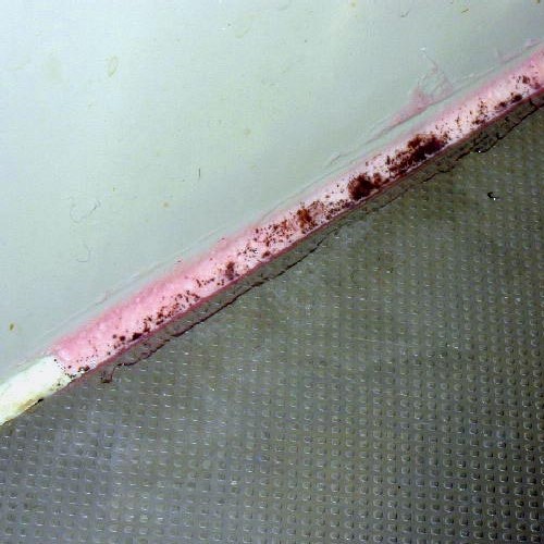 浴室のパッキン・コーキング部分に入り込んだ頑固なカビです。 -