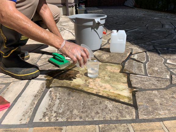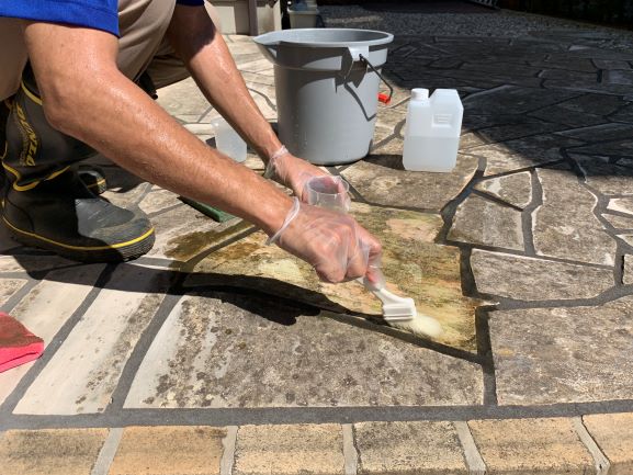 庭の天然石(乱形石)の黒ズミ汚れの落とし方 お掃除のポイント