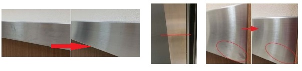 - 近年の商業施設やホテル、病院などに多く使われているステンレス(ヘアライン加工、バイブレーション加工)のお掃除に