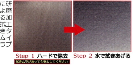 - ※トレシモンハードで拭き上げた後、表面の汚れやしもん、手あかが取れます。研磨加工のタイプによっては拭きムラ(洗剤)が残る場合があります。その場合も、しっかり水拭きをすればキレイに仕上がります。