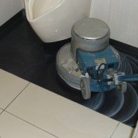 男子小便器下、黒セラミックタイル洗剤やけ後の補修方法 -
