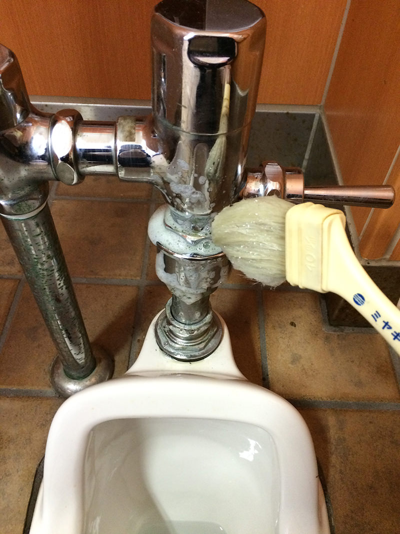 ゆるくなったサビ汚れをこすり洗いをして除去します。